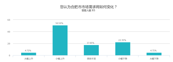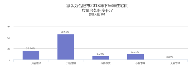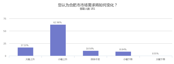 由于本次调研对象均为业内或相关中高层人士,所以整体结果反映,合肥2018年下半年房价上升预期较高,政府房价控制压力增大。
